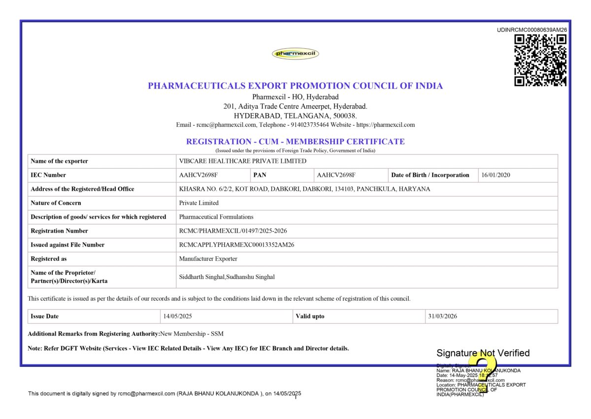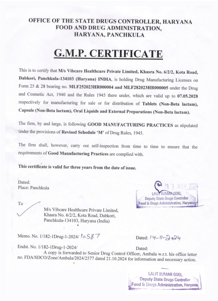 Trustindex verifies that the original source of the review is Google. I have been to many manufacturer and visited the units but Vibcare Healthcare are on of the most Genuine and Best Manufacturers. Maintained all SOP as per the Who and GMP protocols.Ms. Mohini Thakur also takes care of our inventory on timely basis which I had never seen such a good follow up . We are really lucky to be associated with them. Keep going Mr. sidharth Singhal. All the bestPosted on Ramnik JainTrustindex verifies that the original source of the review is Google. I am very satisfied with Vibcare Healthcare for their consistent product quality, secure packaging, timely delivery, and strong credibility. They follow proper safety standards, provide excellent customer support, and offer competitive pricing. Truly a reliable and trustworthy partner in pharma manufacturing.Posted on md rizwan LaddanTrustindex verifies that the original source of the review is Google. Good product quality with on time services.... Highly recommendPosted on Aman KumarTrustindex verifies that the original source of the review is Google. Best manufacturing company with great quality and packaging productsPosted on Manpreet koar KoarTrustindex verifies that the original source of the review is Google. Vibcare Healthcare — a WHO-GMP certified plant known for quality products and a diverse pharma range.Posted on ramandeep kaurTrustindex verifies that the original source of the review is Google. Best quality and servicesPosted on Rajat KumarTrustindex verifies that the original source of the review is Google. Good productsPosted on Ritik SharmaTrustindex verifies that the original source of the review is Google. Nice manufacturing plantPosted on Ajay SharmaTrustindex verifies that the original source of the review is Google. Vibcare Healthcare ensures quality, timely delivery, and great service. Their approach to healthcare and partner relationships makes them one of the most dependable companies in the pharma sector.Posted on MANISH KumarTrustindex verifies that the original source of the review is Google. Vibcare Healthcare Private Limited demonstrate exceptional quality, backed by stringent quality control measures. The consistency in purity, stability and efficacy of their formulations reflect their dedication to advancing healthcare and improving patient outcomes.Posted on Rajkumar Dixit